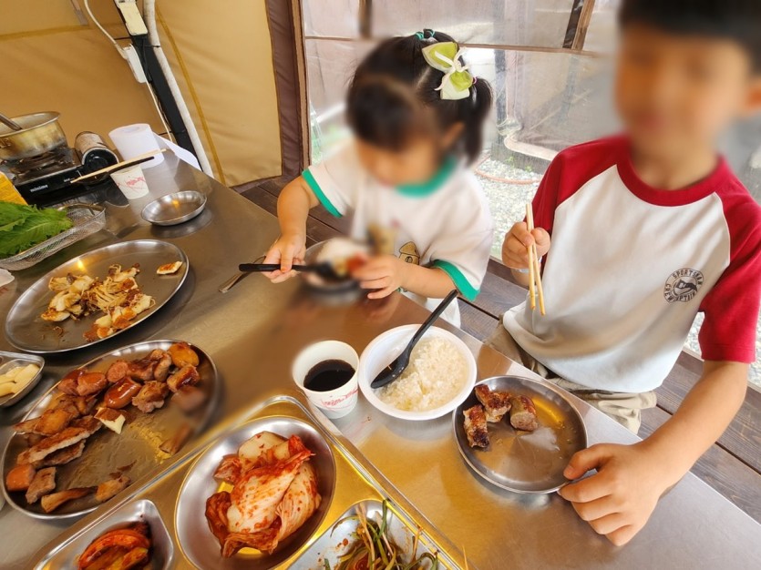 오랜만에 야외에서 바비큐를 먹고 아이들이 마음껏 메뉴를 고를 수 있도록 해 주셔서