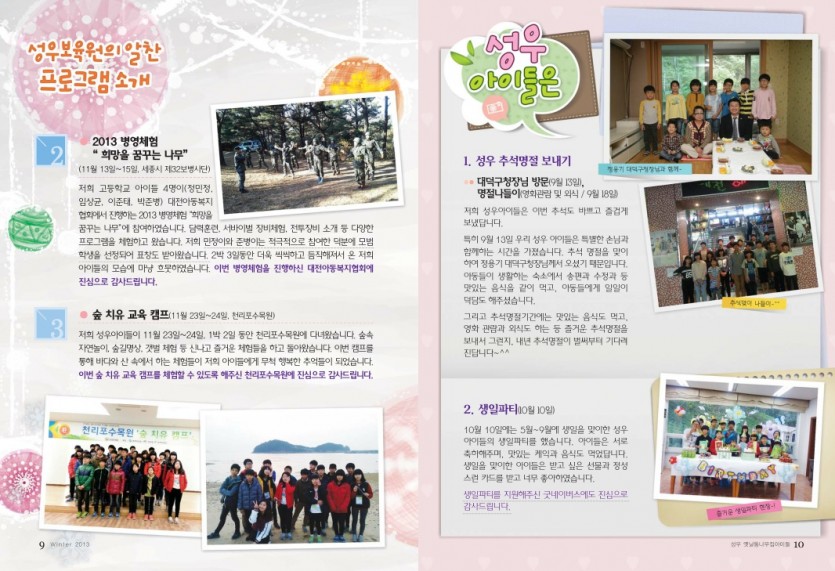 2019.05.17 성우소식지 47호 페이지 정보 작성자 성우보육원 댓글 0건 조회 2,194회 본문 성우소식지 47호(2013.09~2013.11) 목록 댓글목록 댓글목록 등록된 댓글이 없습니다.